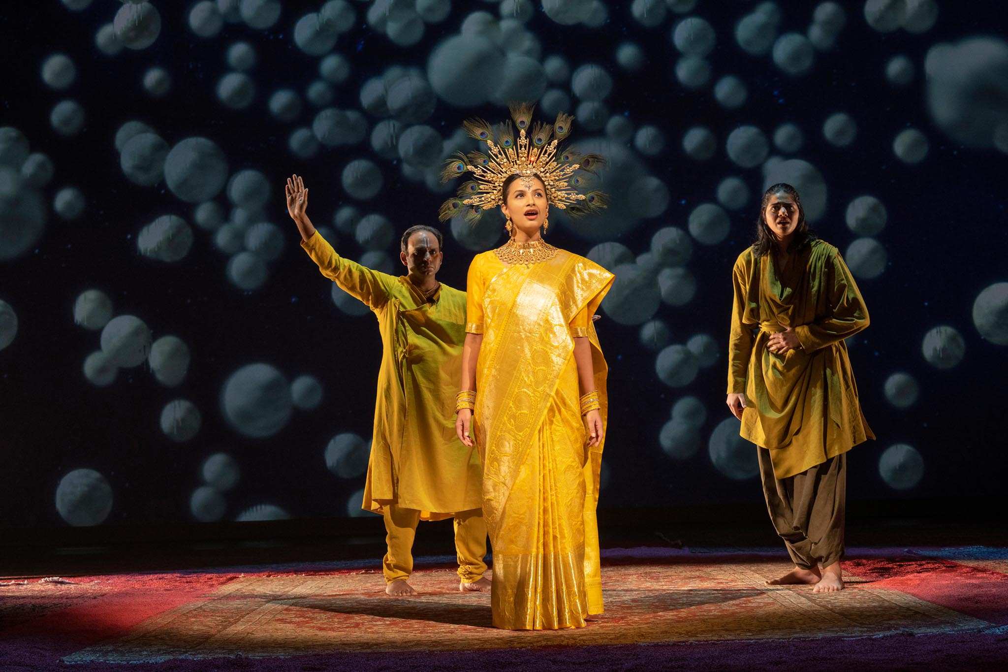 King Janamejaya is told of the war fought by his ancestors – its devastating destruction of the planet, the mass extinction that followed, and of the survivors left behind to rebuild. Using captivating projections, dynamic soundscapes, and poetic stage design, Part 2: Dharma includes a 15-minute Sanskrit opera adaptation of the Bhagavad Gita. King Janamejaya is confronted with the battle of Kurukshetra, and the battle inside his own heart. Are we destined to repeat the mistakes of our ancestors?