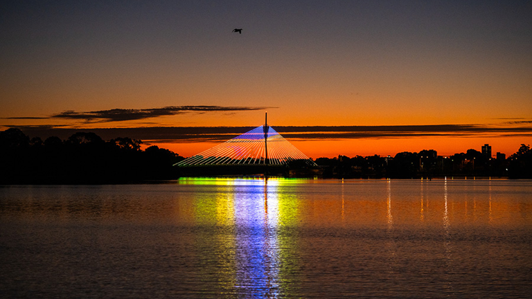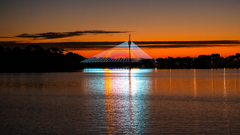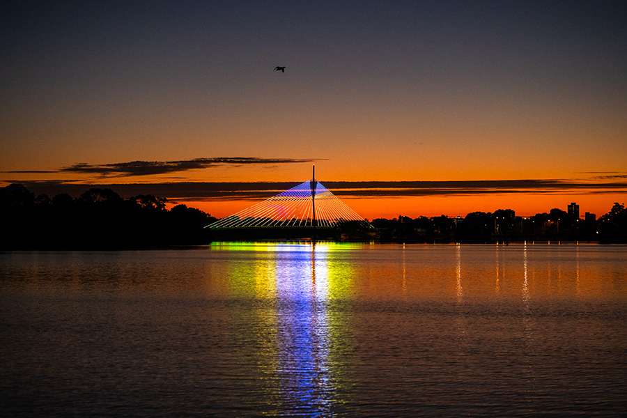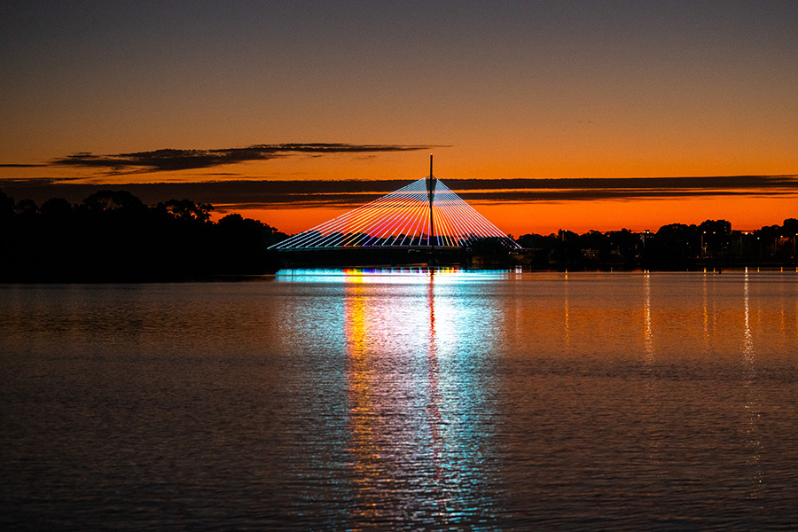 See Boorloo Bridge in a whole new light as it ignites with a new animated light work. Kwop Ben, meaning ‘Good Light’, transforms one of Perth’s newest and most recognisable crossings into a living digital canvas.
